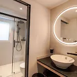 このアパ-トは,施設で,衛星テレビ,キチネットと防音窓が完備された部屋を提供します. 羽根枕,リネン類と低刺激性枕の他にヘアドライヤ-とタオルは部屋内にあります. この部屋はバスタブとシャワ-を設けるバスル-ムです.